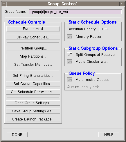 It is instructive to see what schedule of events the application executes, and memory map it uses before changes are made. Select View Groups. Depending on the options chosen, the function box titles will change color to reflect its " group. " A group is the largest collection of connected embeddable boxes that can have their execution scheduled in the same " Static Schedule. " Each group can be partitioned for greater execution control.